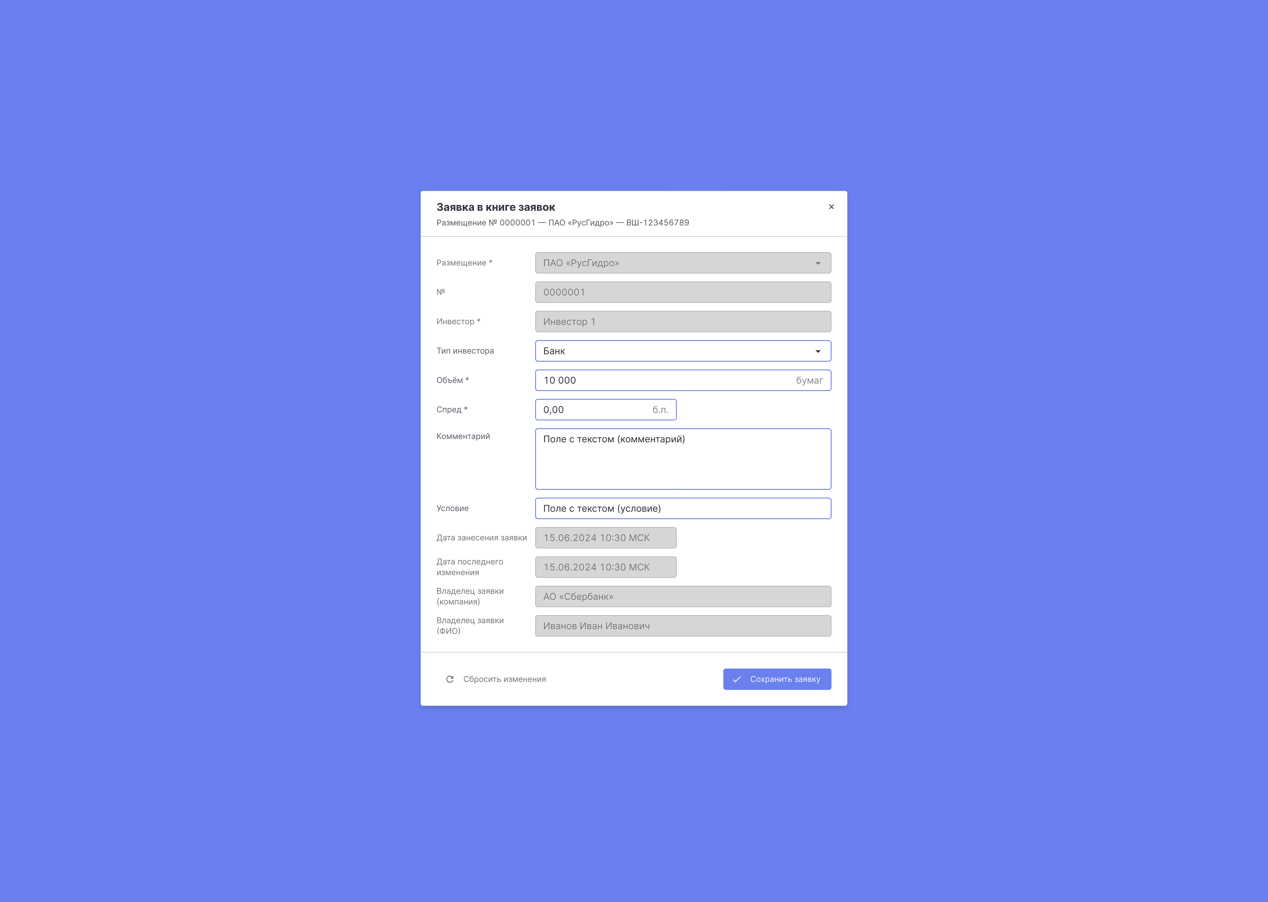 Разработал дизайн системы для сбора заявок инвесторов и формирования книги заявок при размещениях (IPO, SPO, облигации): агрегирование спроса, определение ценового диапазона и распределение бумаг.